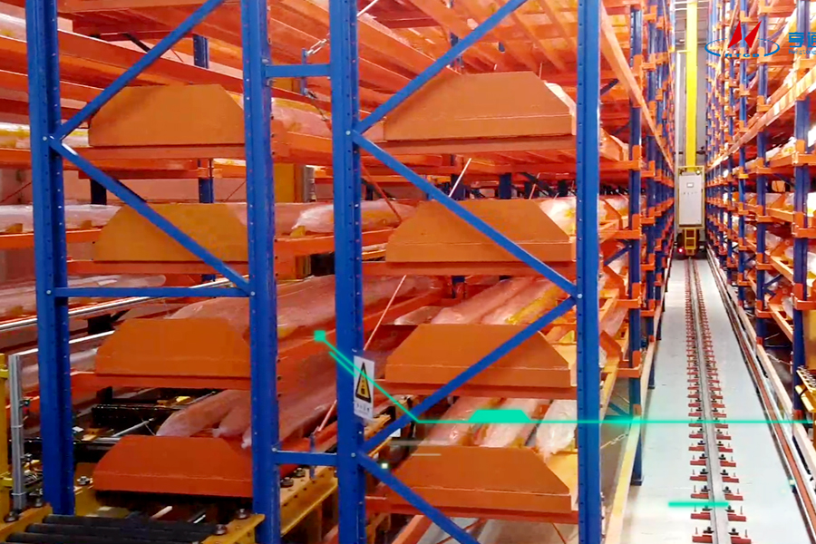 該客戶是一家主要從事戰略性新興產業發展的國家級高新技術企業,主導產品涵蓋了光纖預制棒和光纖、光纜。客戶需求為本纖和色纖盤的儲存,進出庫、生產線對接。產線節拍本纖和色纖各100盤/h,立庫能力為 400盤/h,24小時/天制