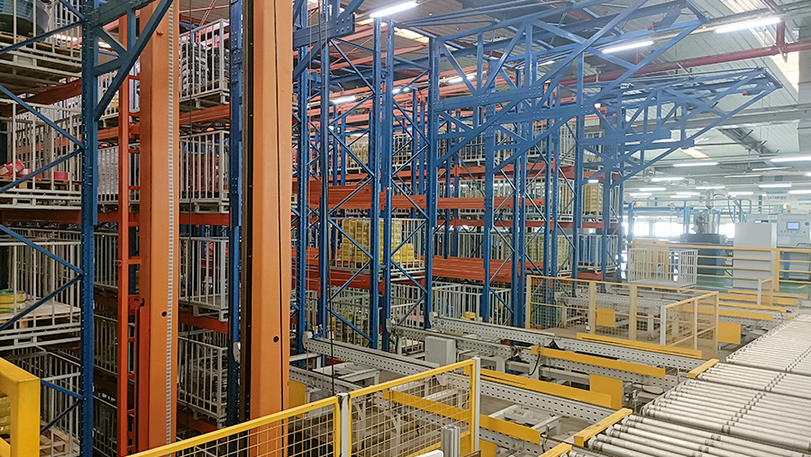 本方案總貨位3712個,高度11m。本立體倉庫系統全套設備由貨架、巷道堆垛機系統及巷道設備(天軌、地軌、滑觸線)、輸送系統、計算機調度監控系統(WCS)、倉庫管理系統(WMS)、SCADA、MES、中控大屏和托盤等組成。提高35%運行效率。