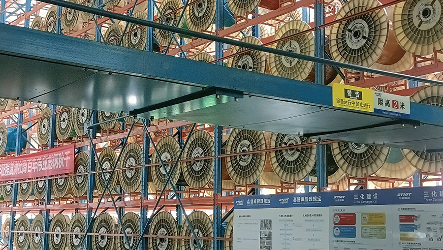 客戶是一家主要從事從事從事銅桿、鋁桿、鋁合金桿生產加工銷售;銅絲、鋁絲、銅鋁合金桿、通信電纜及附件、電力電纜及附件銷售。客戶需求為盤具的儲存,進出庫、生產線對接,解決原來采用盤具導軌庫存放盤具占地面積大的問題等問題。