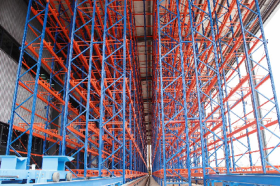 本立體倉庫全套設備由貨架、堆垛機系統、穿梭車、輸送線、計算機調度監控系統和倉庫管理系統等組成。總貨位6544個,鈦白粉庫4320個(13.5排*2貨位*16列*10層),漿包庫2224(24排*12列*8層-10排*8層),鏈條輸送機、漿包整形機、直行穿梭車,WCS/WMS系統各一套。